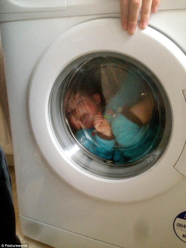 Ребенок залез в стиральную машину