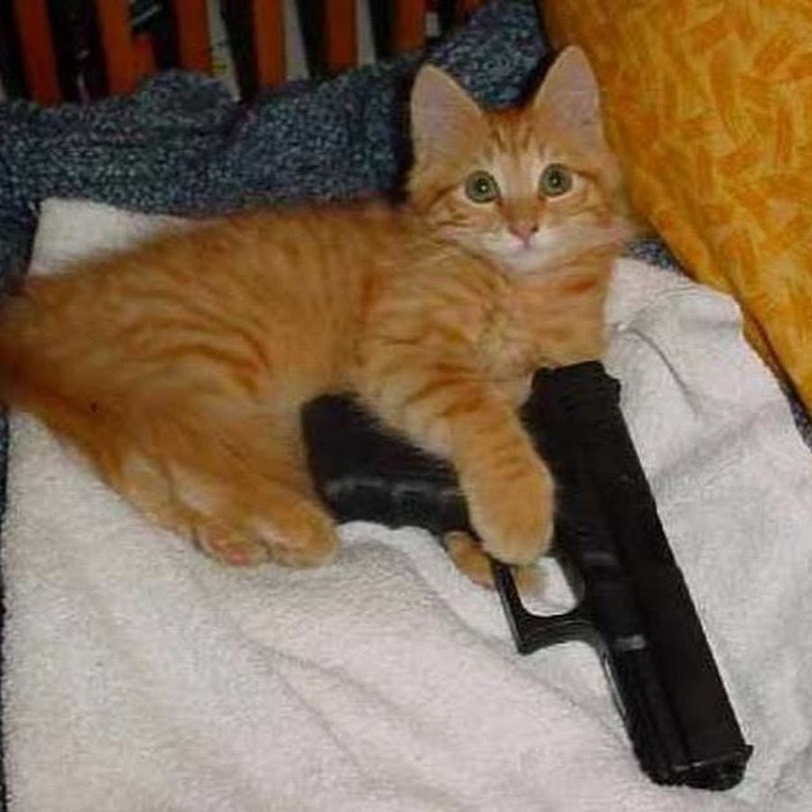 Кот с пистолетом в руках