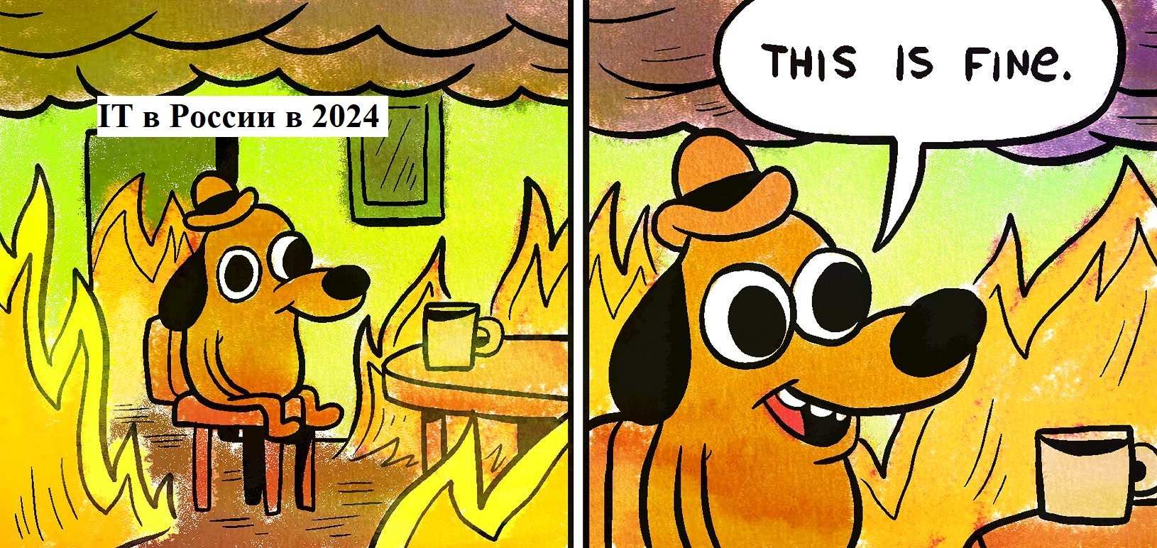 Мем с собакойв горящем досе