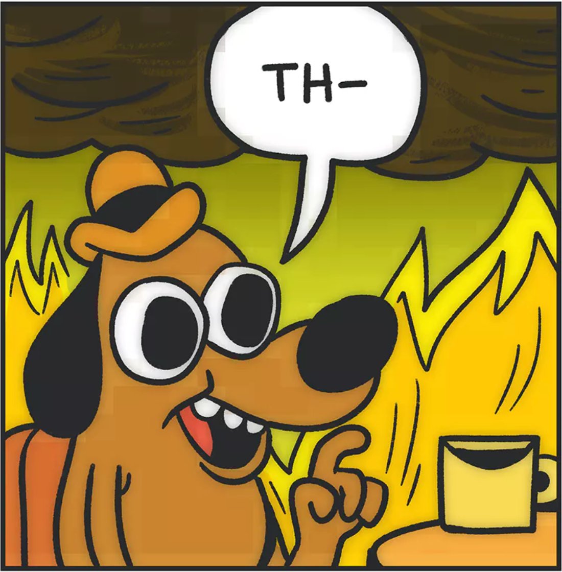 Этот мем с собакой, держащей кружку кофе во время пожара, стал одним из самых забавных и популярных в интернете. Используется как символ стрессовой ситуации, когда ты пытаешься оставаться спокойным в хаосе. Юмористический контекст этой картинки делает её идеальной для создания смешных шуток на тему повседневных проблем и неожиданных ситуаций.