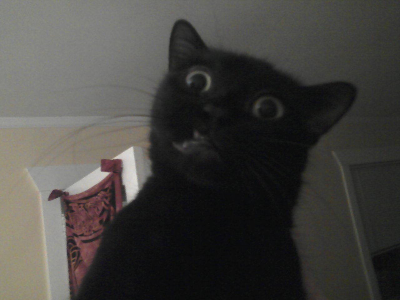 Черная кошка удивлена