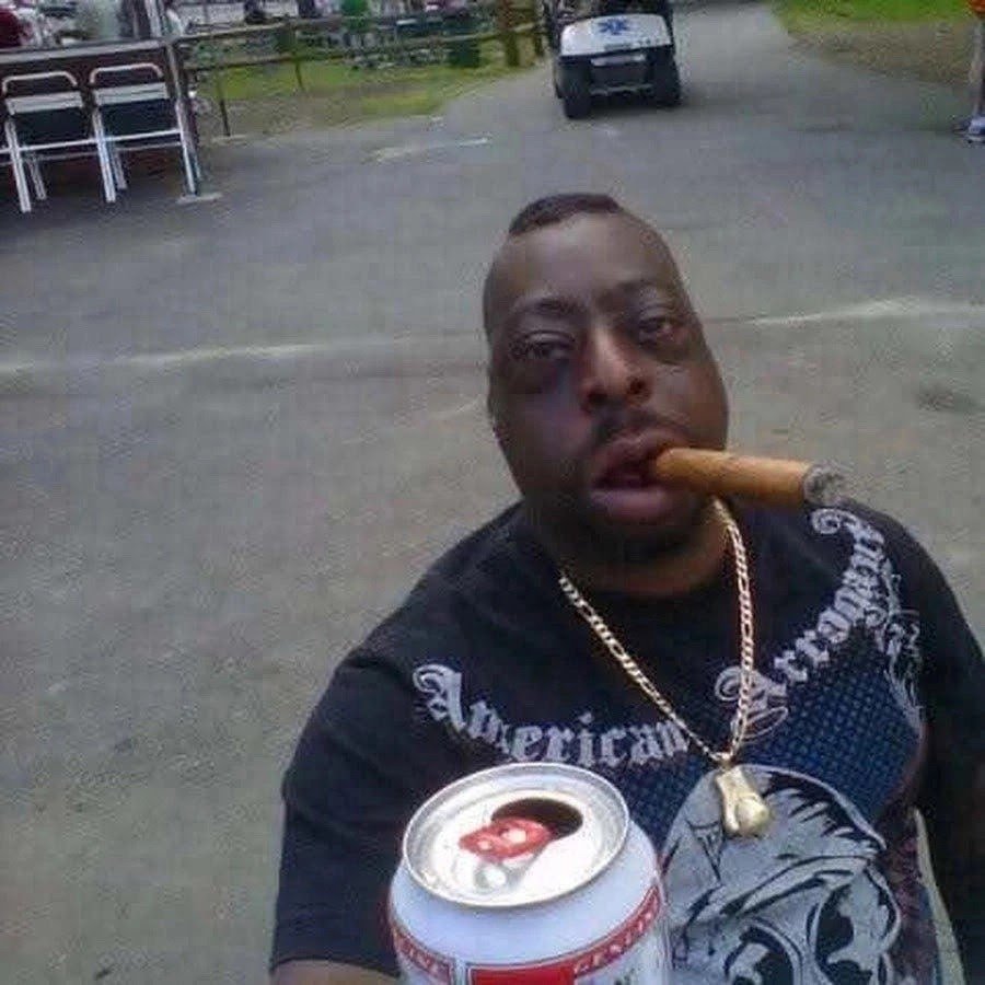 Негр с сигарой и пивом