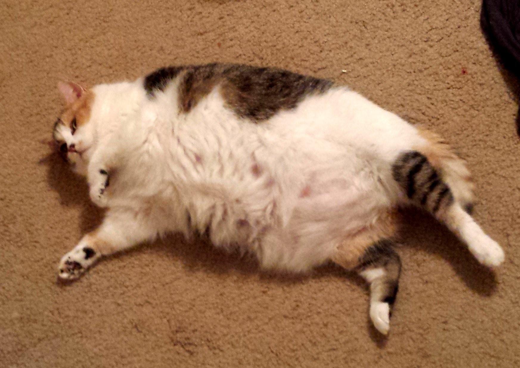 Толстый кот пузом кверху