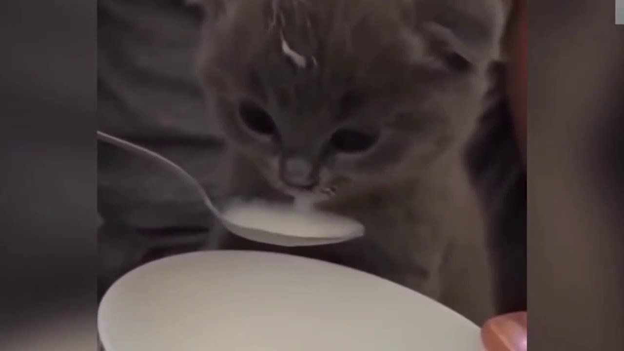 Кот ест с ложки Мем