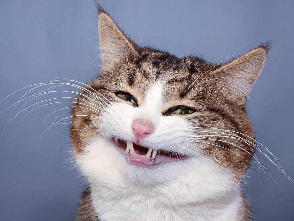 Кот улыбается с зубами