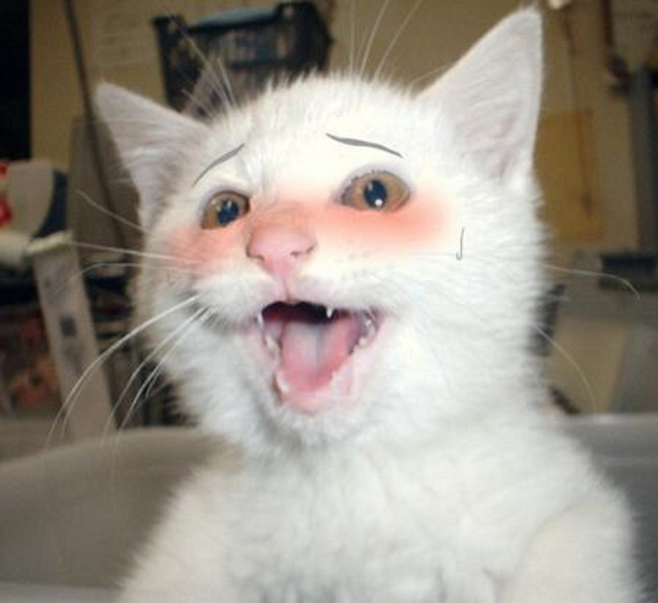 Кот смеется Мем с зубами