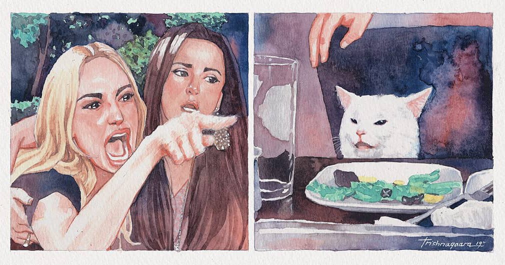 Мем с женщиной и котом