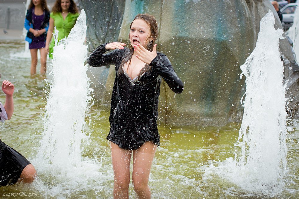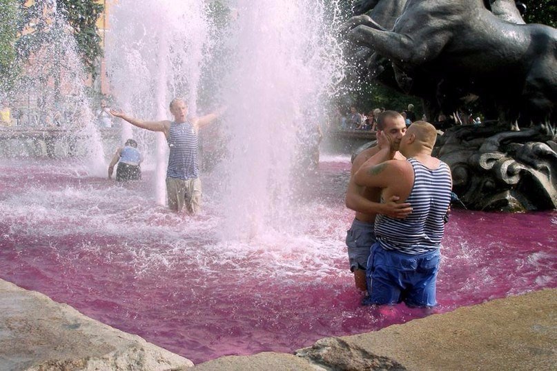 Купание в фонтане в одежде