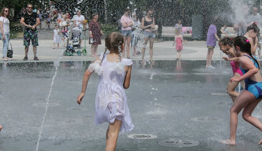Летом у фонтанчика мальчики