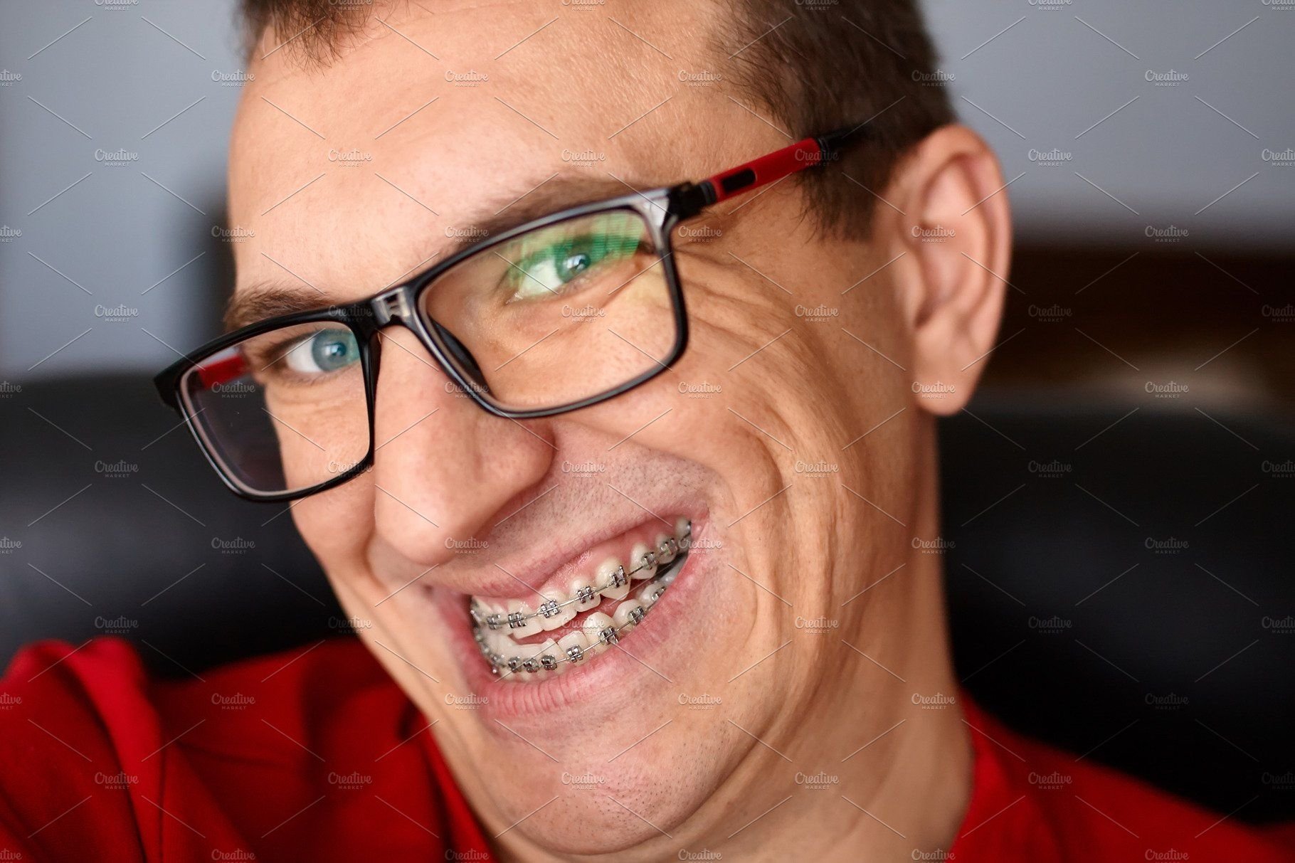 Улыбка с брекетами мужчина